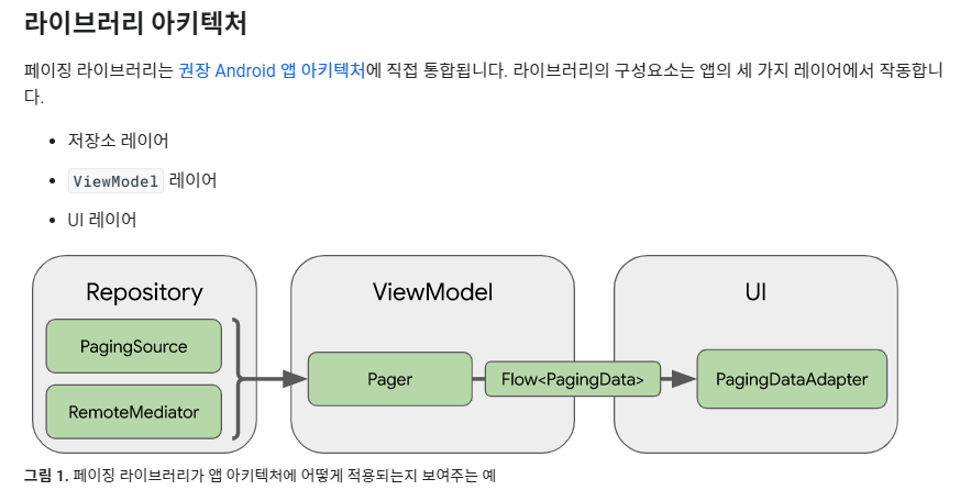 아래는 공식문서의 Paging 3 개요 일부이다.