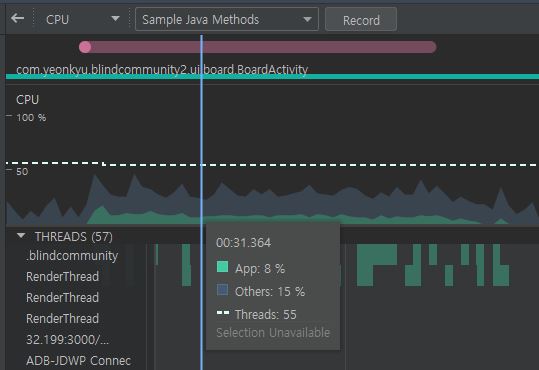Android Studio를 설치하면 제공되는 Profiler에서 이것저것 관찰해봤다.