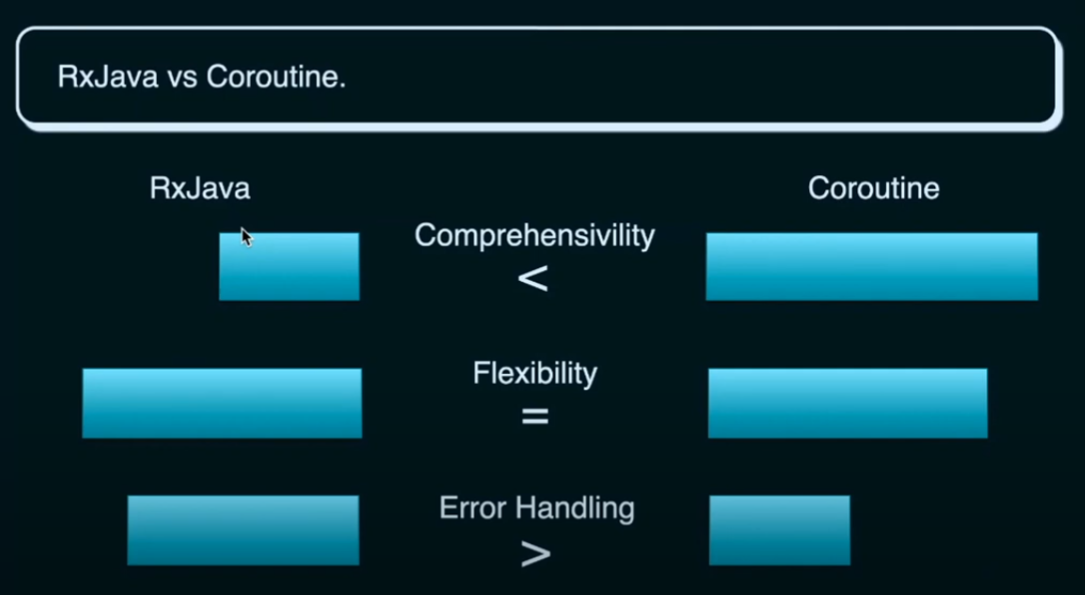 - Sequential Code 구조이다.(이는 RxJava도 마찬가지다. sequential하다는 것은 콜백이 없어서 가독성이 좋다.)
