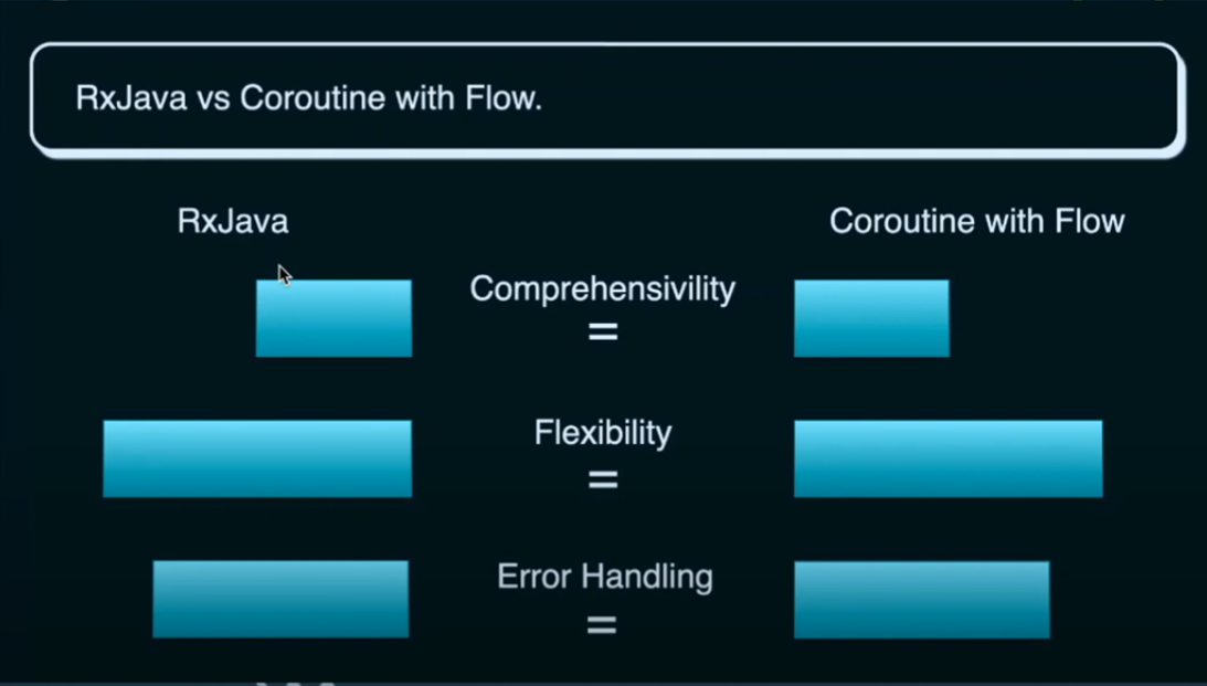 RxJava, Coroutine + suspend fun, Coroutine Flow에 대해서 비교분석하셨다.