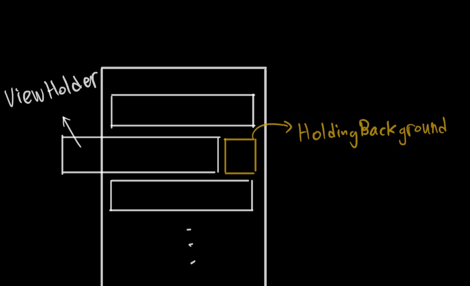 - onChildDraw()는 뷰홀더가 interaction이 없으면 호출되지 않는다. 따라서 Activity/Fragment가 화면상에 보이지 않게 되었거나 그러면 HoldingBackground가 보이지 않게 된다.(View가 아니므로 onDraw()에서 그려줘야함)