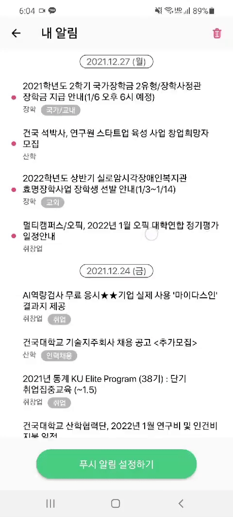 또한 Drawable로 어떻게 클릭이벤트를 감지할 것이냐에 대한 문제는 조금 더 원초적인 방법으로 해결이 가능했다. RecyclerView에 터치다운 이벤트 리스너를 달고, 클릭되는 좌표가 Drawable이 위치한 영역에 있을 경우 또 다시 터치업 이벤트 리스너를 추가한다. 터치업 이벤트가 발생했을 때에도 해당 좌표가 Drawable이 위치한 영역에 있는 경우 → Drawable을 클릭했다는 콜백으로 처리하는 것이다!