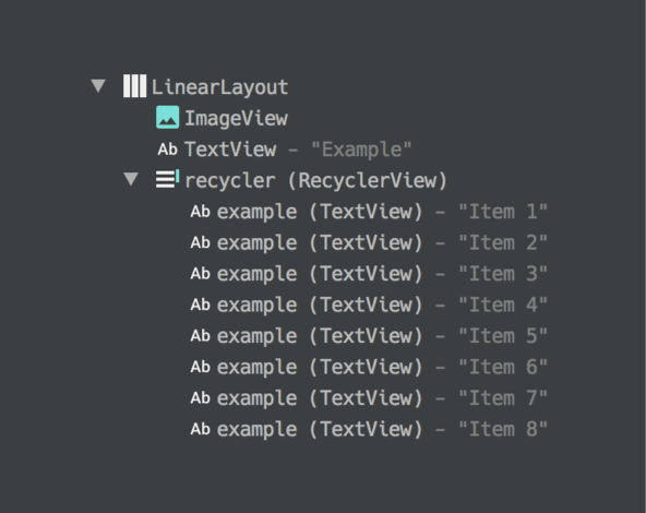 처음에는 문제가 없어 보일 것입니다. 하지만 Layout 계층을 보면(Layout Inspector tool을 사용하여) 이러한 것을 볼 수 있습니다.